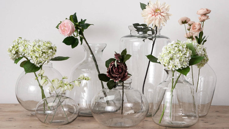 The Glass collection, hand picked by our florists to help you display hand ties and stems of flowers in an easy and stylish fashion. Includes versatile and timeless clear glass or smoky sage vases, perfect for displaying real and faux flowers alike.